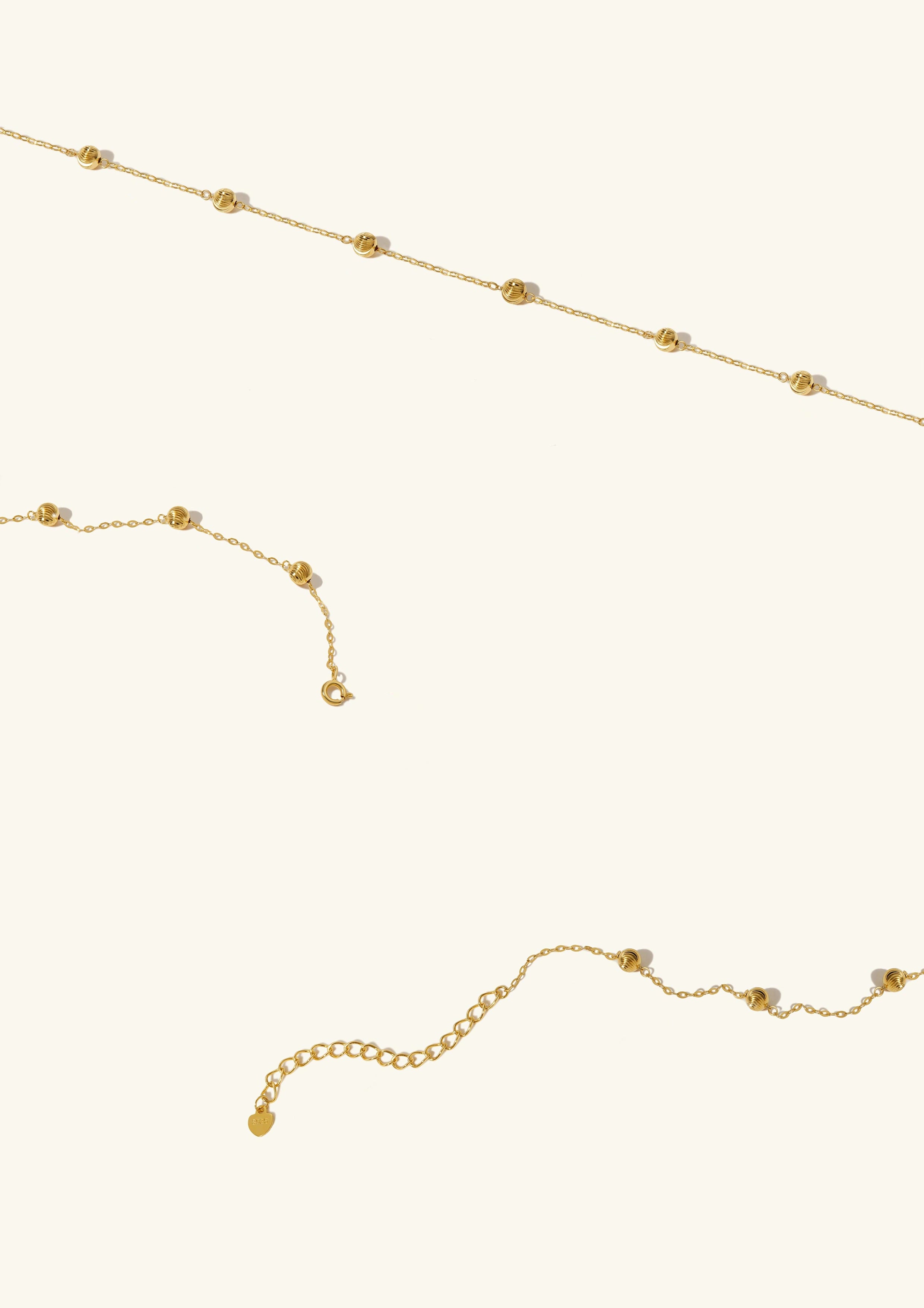 Designed exclusively for minimalists who appreciate refined details, our Dot Station Necklace is crafted with a high-quality solid 925 sterling silver base and finished with a lavish 18K gold plating. Its delicate dotted design shines either layered with your favorite jewelry pieces or worn alone to exude understated elegance.